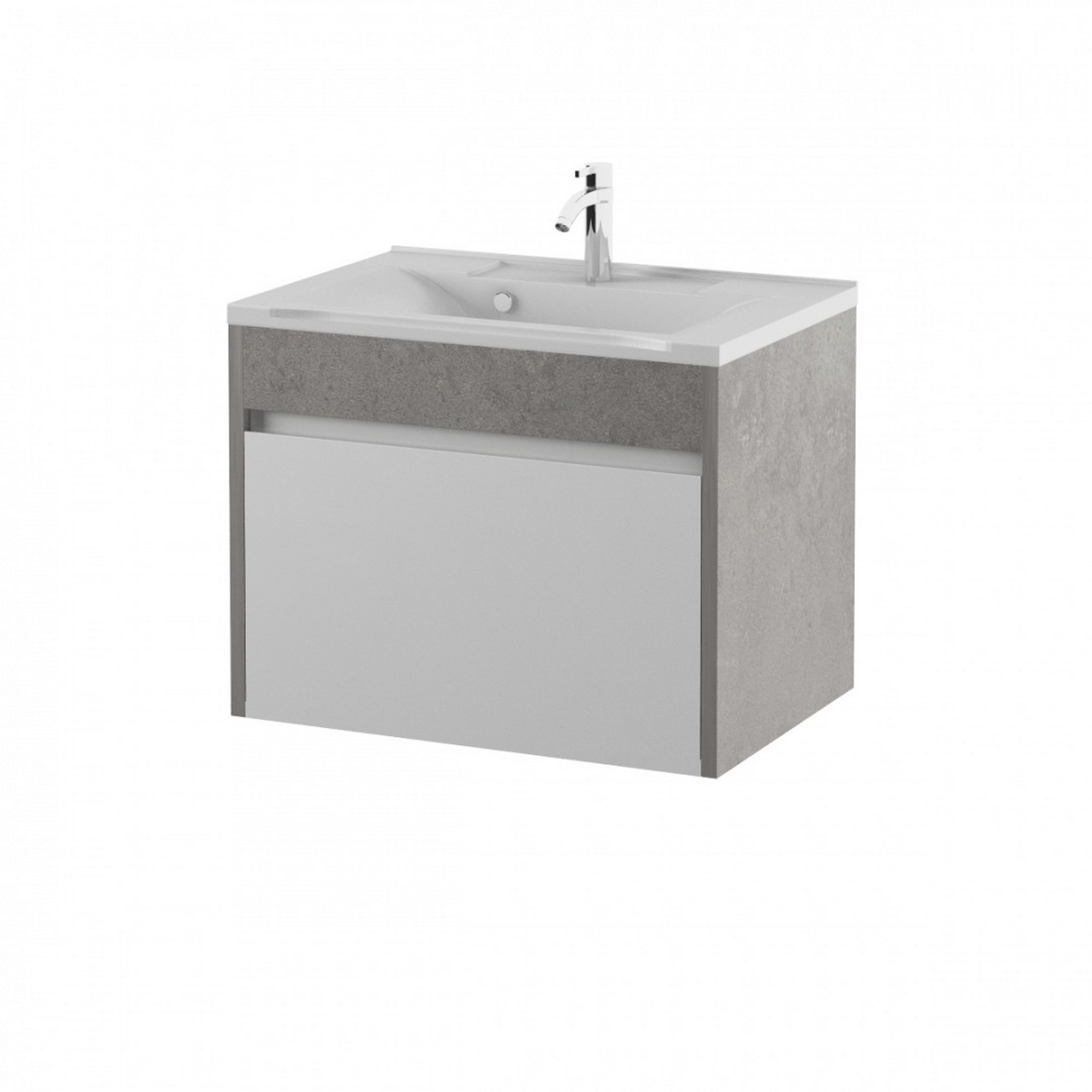 Корпус и фасады выполнены из качественного МДФ с 5 слойным использованием эмали IRURENA (Испания). Серая вставка "под бетон" выполнена из ламината высокого давления (HLP), имеет высокую износостойкость и влагозащиту.