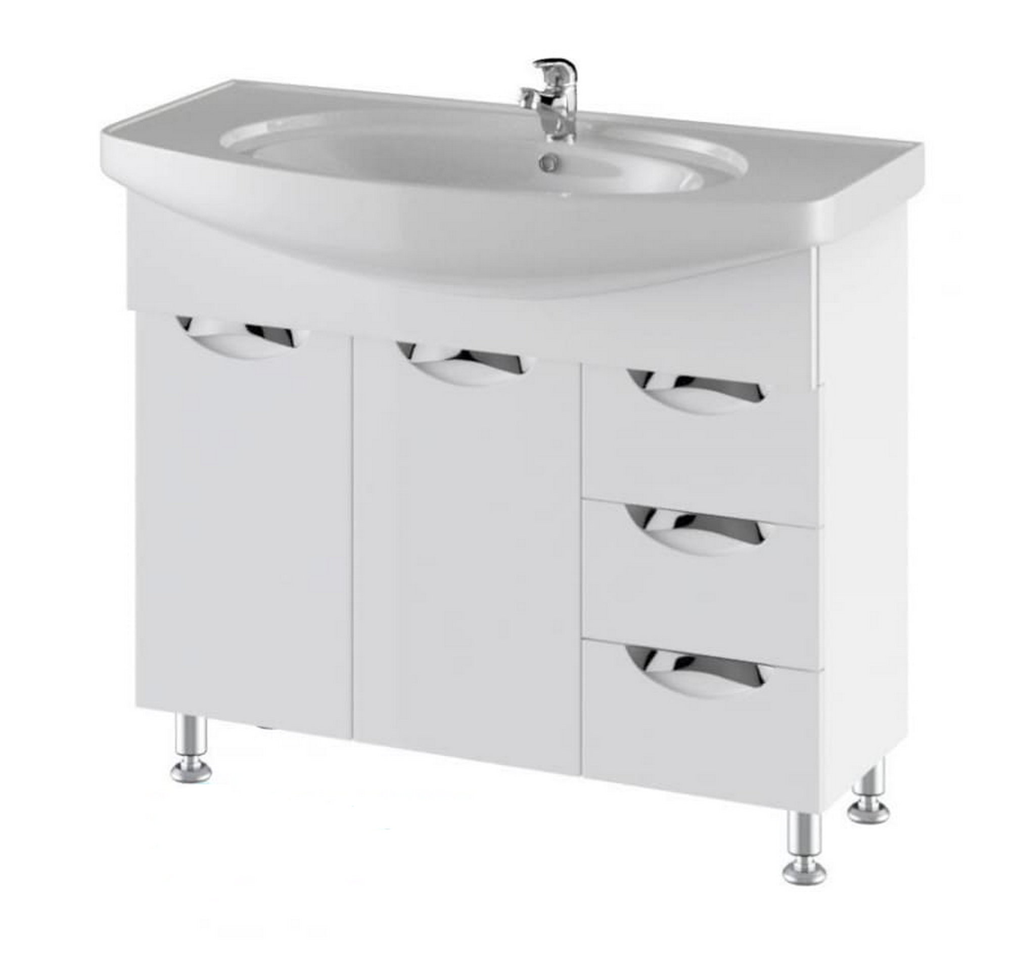 Состоит из трёх выдвижных ящиков и двух распашных дверец.