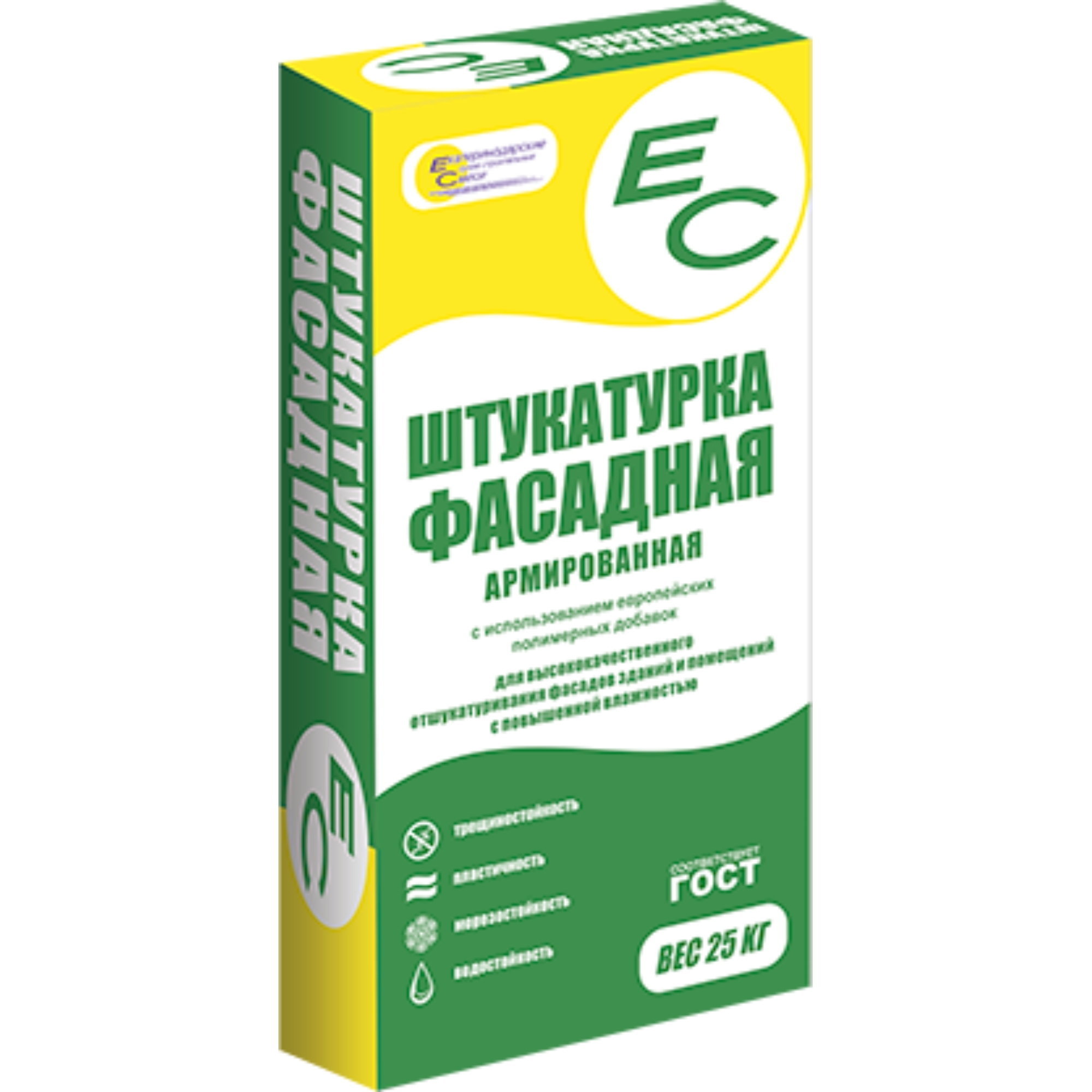Морозостойкая фасадная штукатурка ЕС предназначена для выравнивания стен и потолков из кирпича, бетона, газобетона внутри помещений с повышенной влажностью, а также для оштукатуривания фасадов под окончательное шпатлевание, окраску, облицовку плиткой.